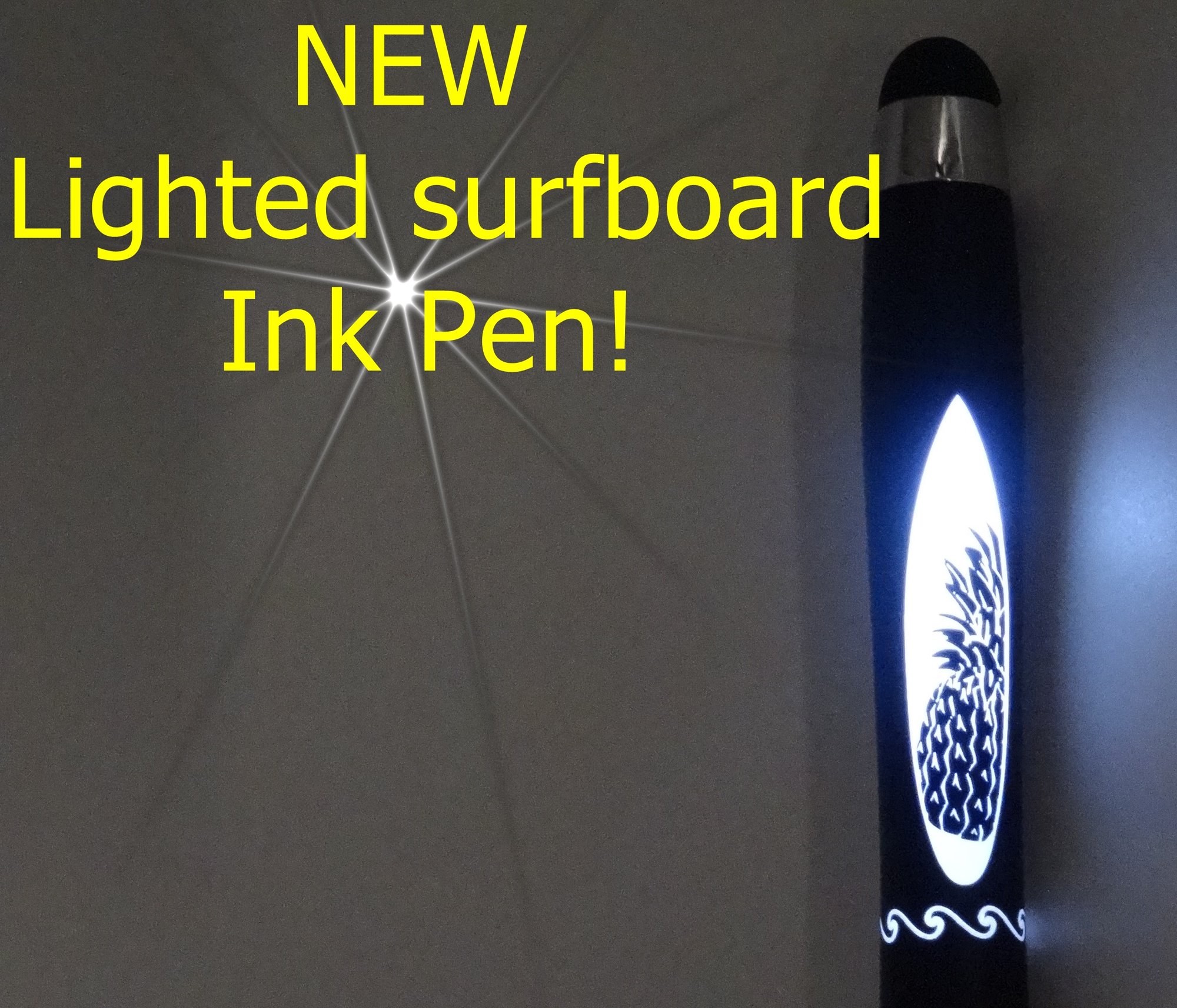 LIGHTED surfboard pinapple design INK PEN !